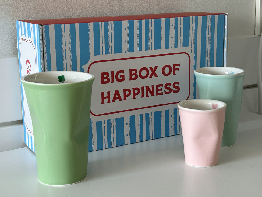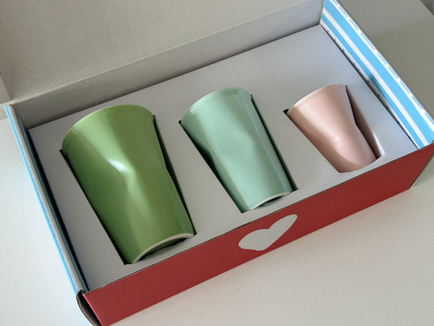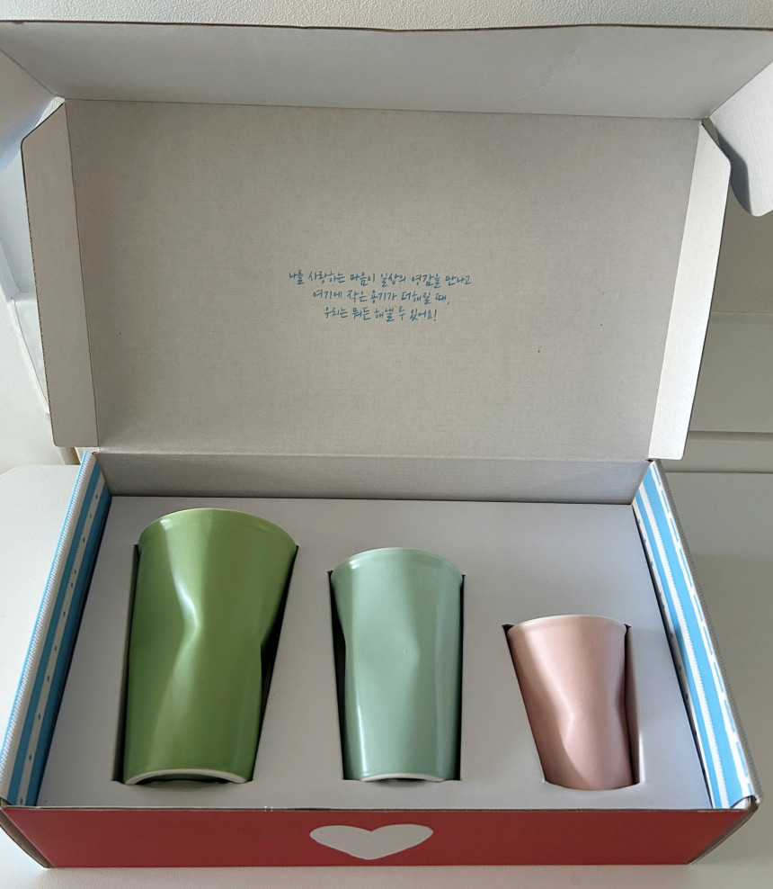 이 세 가지 마음을 담은 컵을 한 상자에 모았어요.