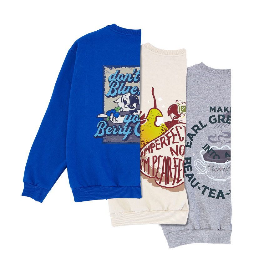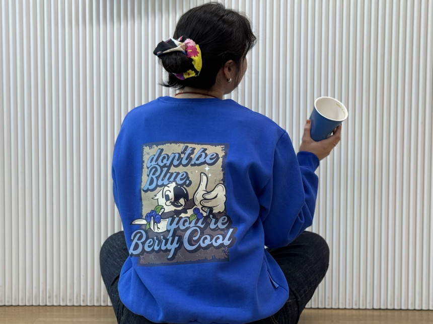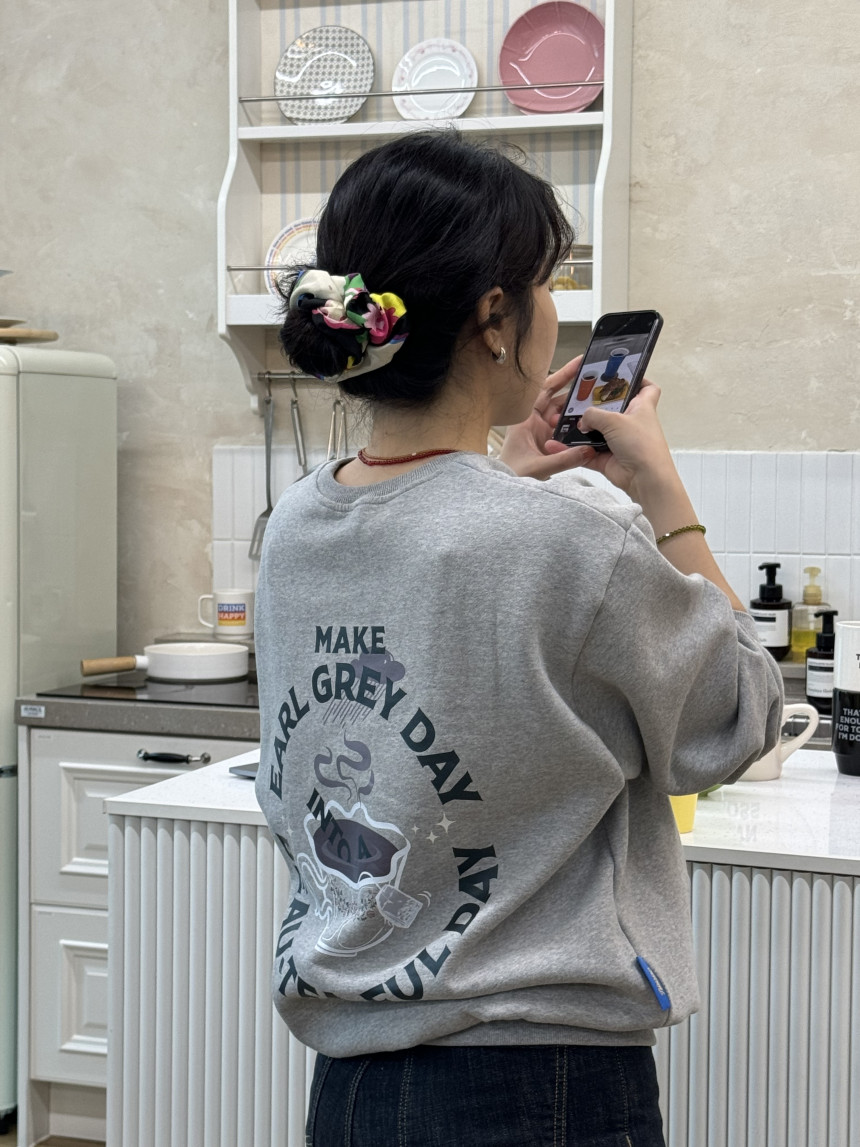맨투맨 앞면에는 귀여운 블루베리, 배, 얼그레이 자수가 새겨져 있어 보는 것만으로도 기분이 좋아질 거예요. 맨투맨 색상은 각각 블루베리, 베, 얼그레이 컬러에서 컬러에서 영감을 받아 따뜻하고 포근한 느낌을 더했답니다.