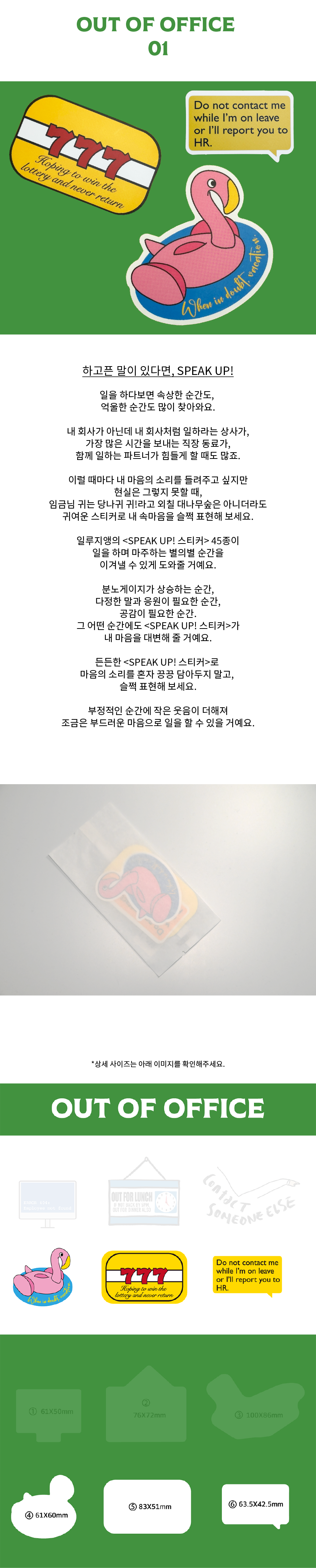 오늘, 여러분이 일을 하며 하고 싶은 말은 무엇인가요? 스피크 업! 스티커로 하고 싶은 말을 귀엽게 표현해요.