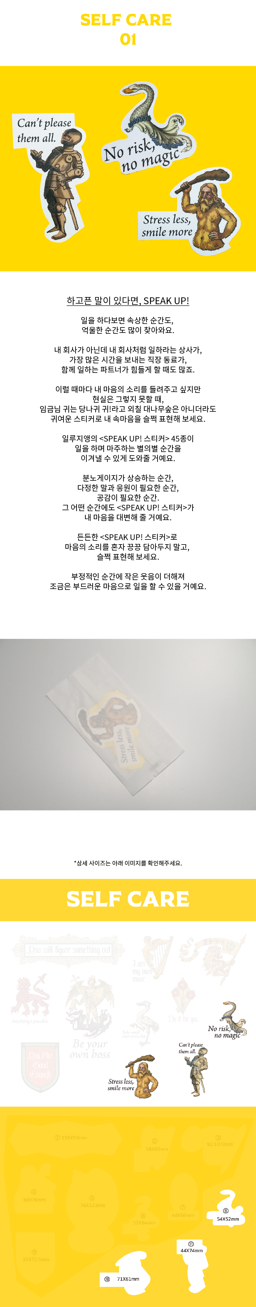오늘, 여러분이 일을 하며 하고 싶은 말은 무엇인가요? 스피크 업! 스티커로 하고 싶은 말을 귀엽게 표현해요.