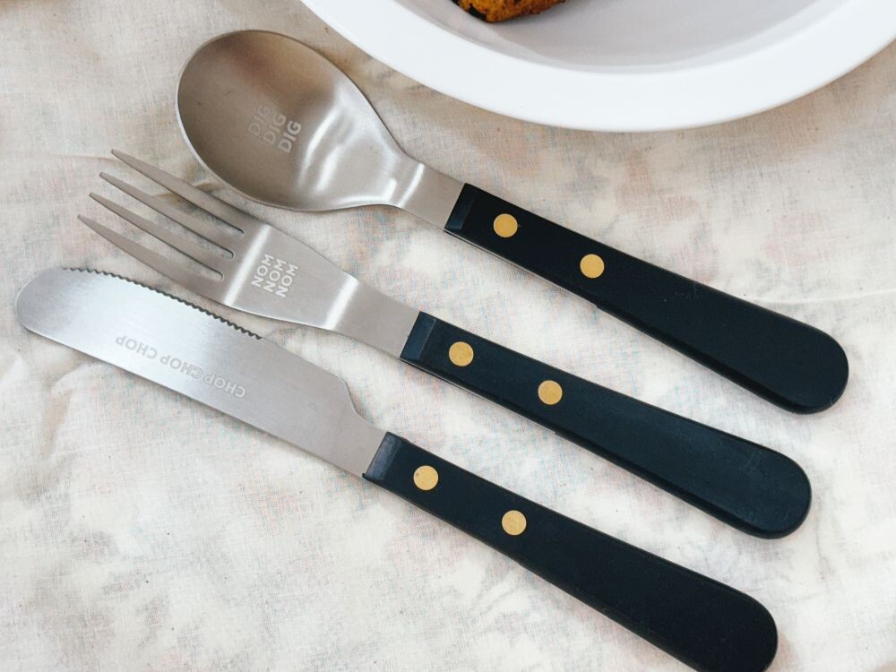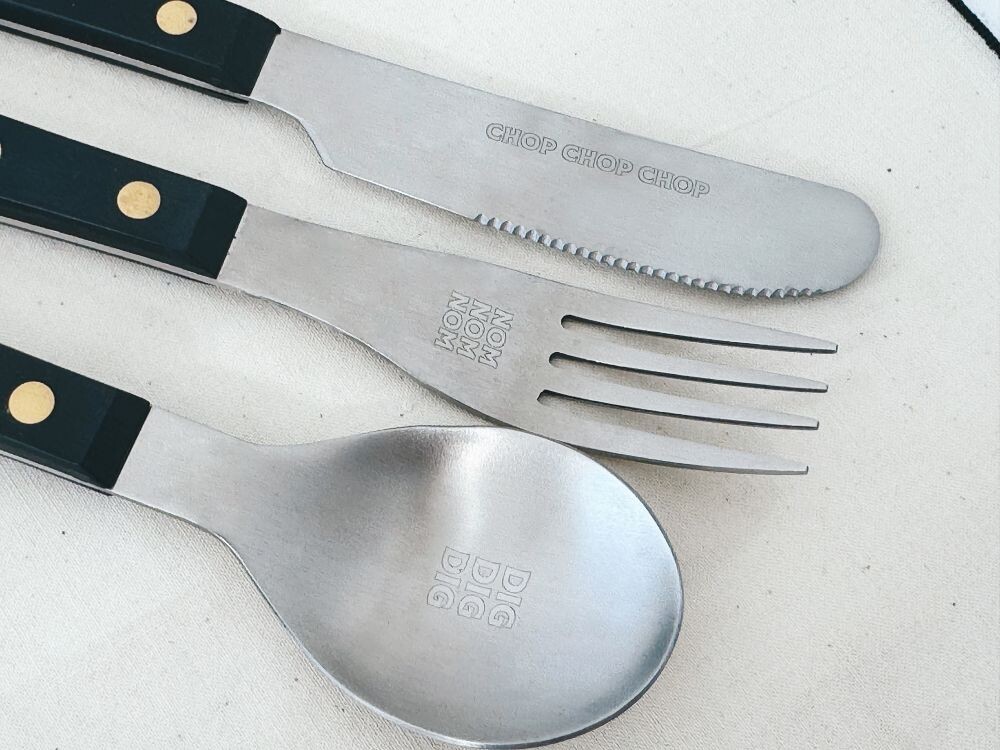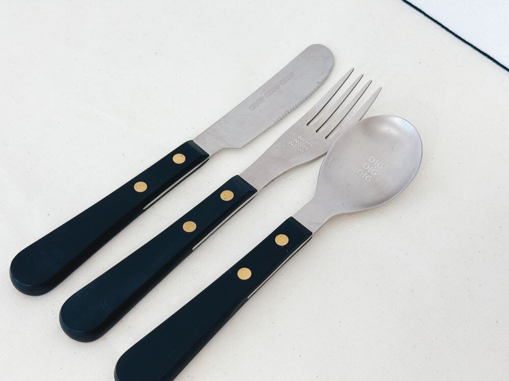 ‘말하는 커트러리’는 독일 ewigstern의 JUBEL 브랜드 제작물로 블랙핸들과 황동 골드 리벳이 매력적인 친구예요.
