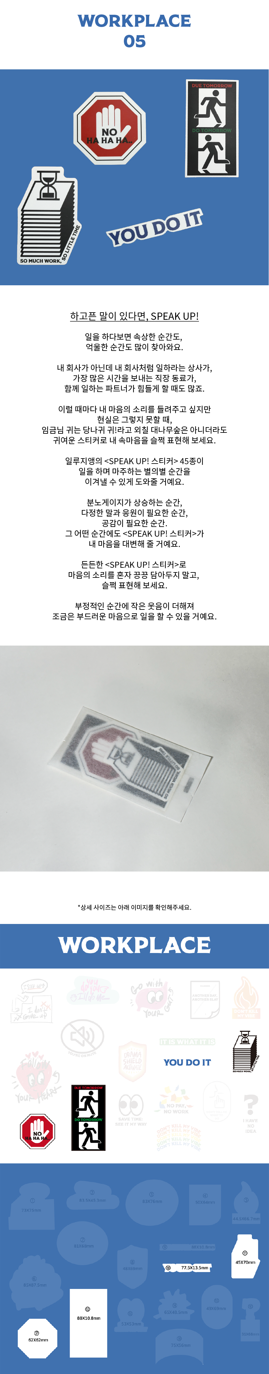 오늘, 여러분이 일을 하며 하고 싶은 말은 무엇인가요? 스피크 업! 스티커로 하고 싶은 말을 귀엽게 표현해요.