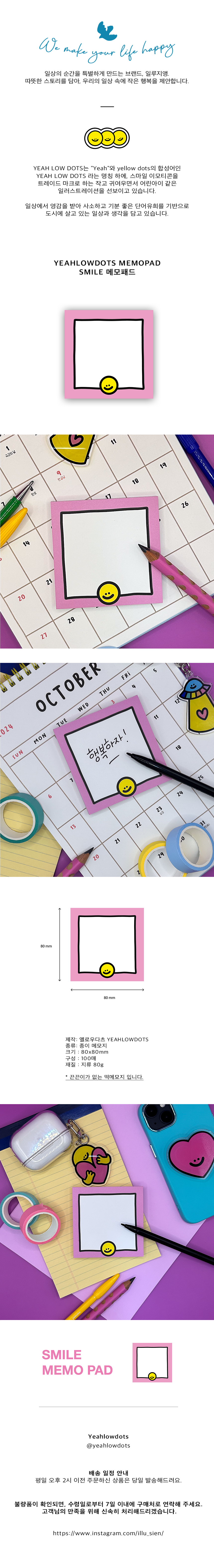 [옐로우다츠] 스마일 메모패드(Pink) 💬
