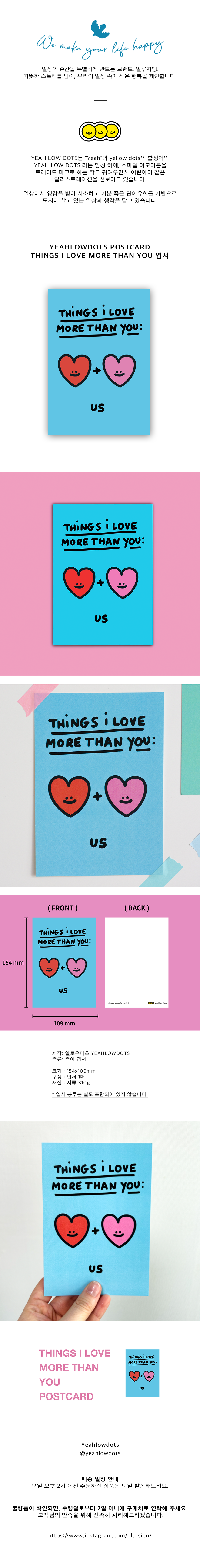 [YEAHLOWDOTS] Things I Love More Than You : Us Postcard