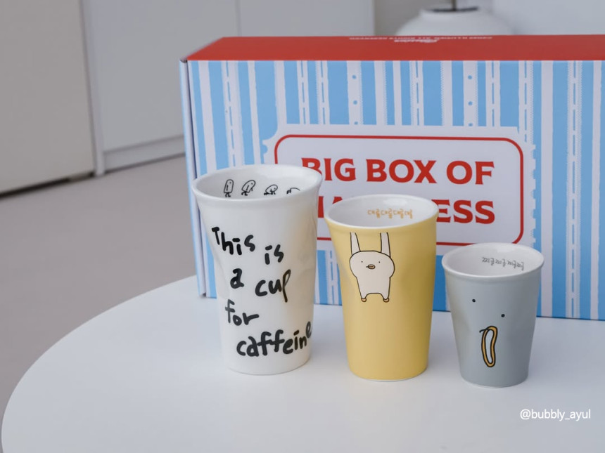 일루지앵 컵므파탈 자기애, 행운, 카페인 컵 등 가장 큰 사이즈의 컵 2박스가 꼭 맞는 사이즈에요.